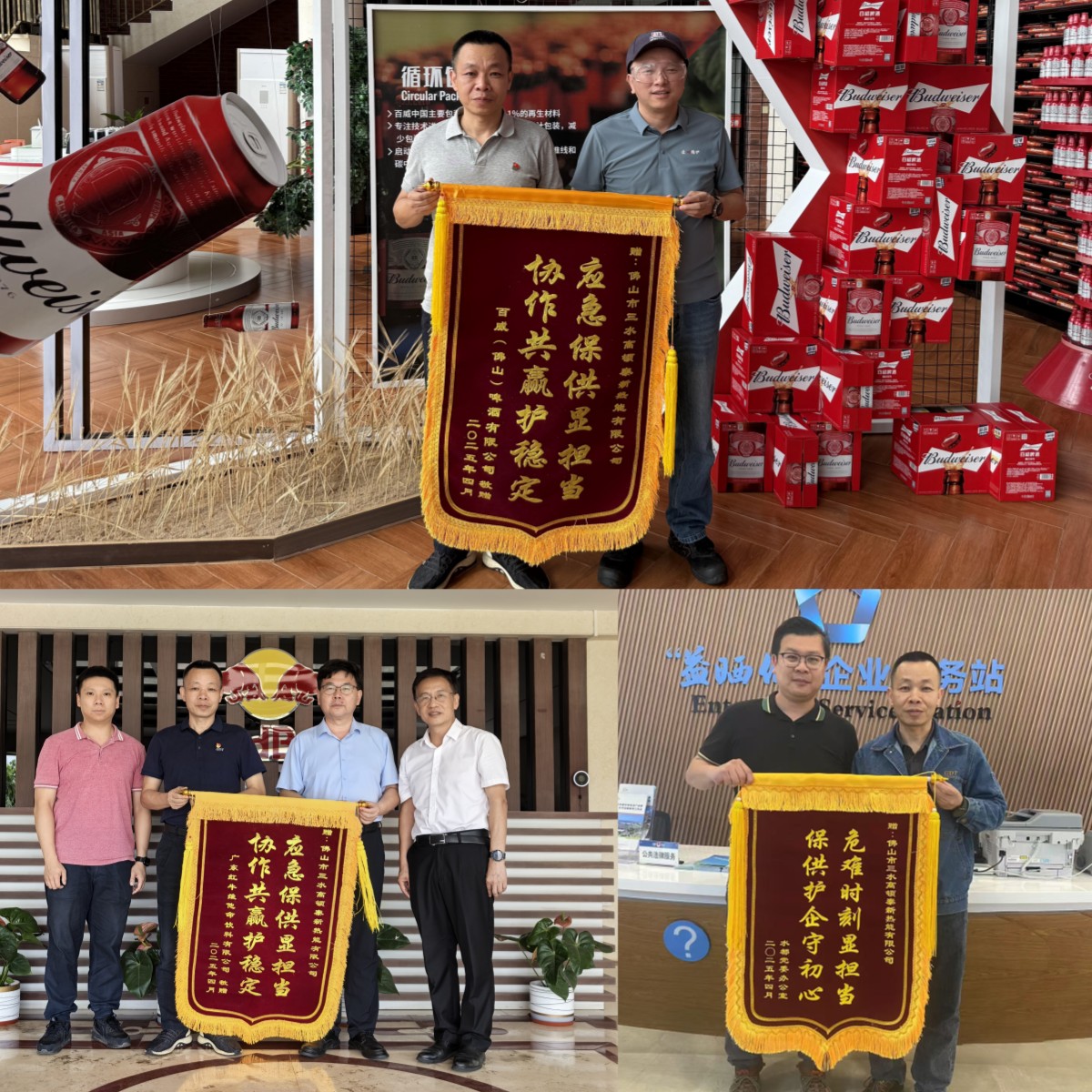為表彰高頓泰公司在保供攻堅(jiān)中的突出貢獻(xiàn):水都黨委辦公室特授予“危難時(shí)刻顯擔(dān)當(dāng) 保供護(hù)企守初心”錦旗;園區(qū)重點(diǎn)用汽企業(yè)廣東紅牛維他命飲料有限公司、百威(佛山)啤酒有限公司相繼致贈(zèng)“應(yīng)急保供顯擔(dān)當(dāng) 協(xié)作共贏護(hù)穩(wěn)定”錦旗。以上榮譽(yù)是水都園區(qū)政企對(duì)高頓泰公司關(guān)鍵時(shí)刻挺身而出、勇于擔(dān)當(dāng)?shù)某浞挚隙?,更是?duì)“國(guó)企姓黨、服務(wù)為民”初心的生動(dòng)映照。