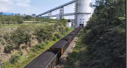 站臺(tái)發(fā)運(yùn)業(yè)務(wù),首列車煤開(kāi)出站臺(tái)的照片